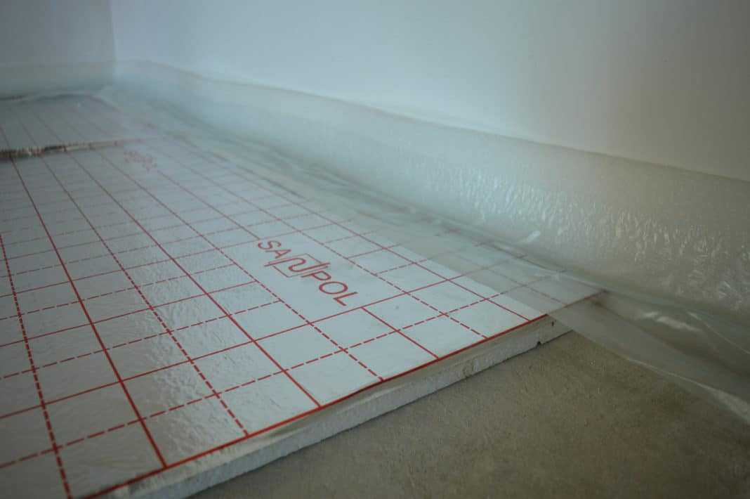 Стены от пола нужно шпаклевать примерно на 15 см, это поможет вмонтировать демпферную ленту. Самым высоким утепляющим слоем обладает керамзитобетонная стяжка.