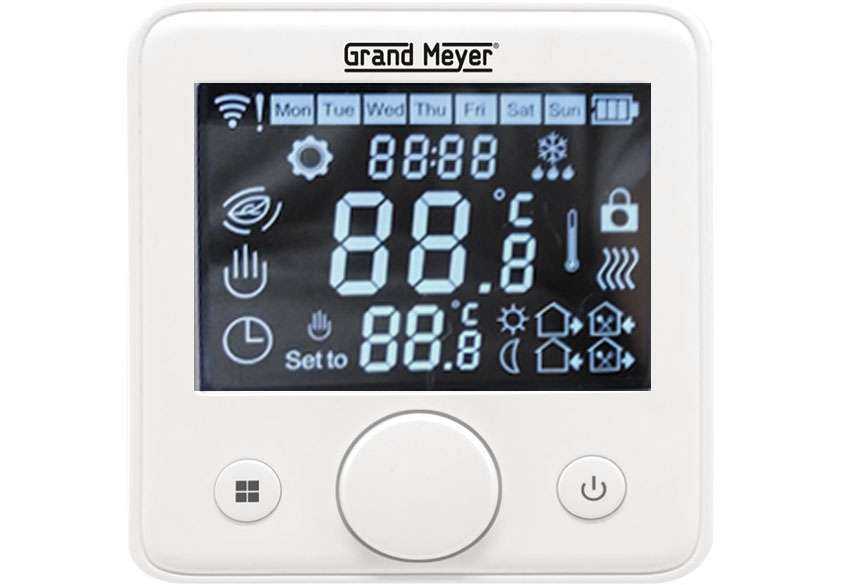 Программируемый термоконтроллер для системы теплого пола с электрическим типом управления. Есть также возможность ручного управления. Автоматические данные вносятся на недельный период. Максимальная нагрузка составляет 3600 W. Для максимальной надежности и безопасности корпус выполнен из огнезащитного пластика. Заводские настройки температуры – 5-50 °С. Есть опция управления через Wi-Fi. Установка может быть как выносной, так и встроенной. Перед выпуском в продажу модель сертифицирована по стандартам CE, EAC.