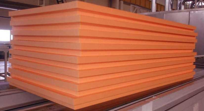 - Экструдированный пенополистирол. Этот материал получается путем вспенивания гранул газом. Данную массу пропускают через экструдер, который ее формирует. Утеплитель этого вида имеет структуру мелкоячеистой губки, представленной разных цветов.