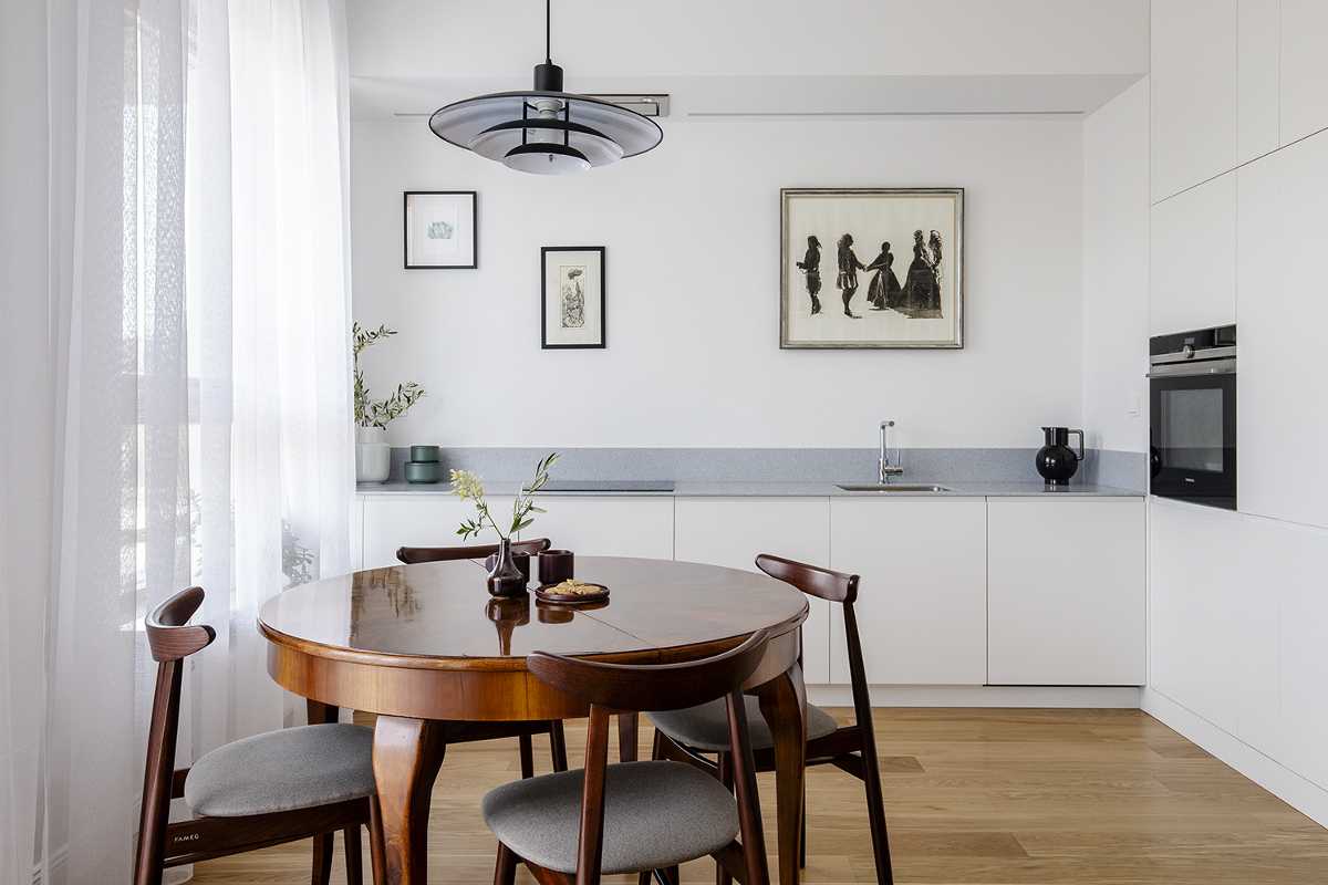 Если семья состоит не более, чем из двух человек, то для обеденной зоны можно выделить место на кухне. Например, переделанный в столешницу подоконник. К нему необходимо купить барные стулья, а лучше – барные табуреты, которые полностью задвигаются под столешницу, освобождая больше места.
