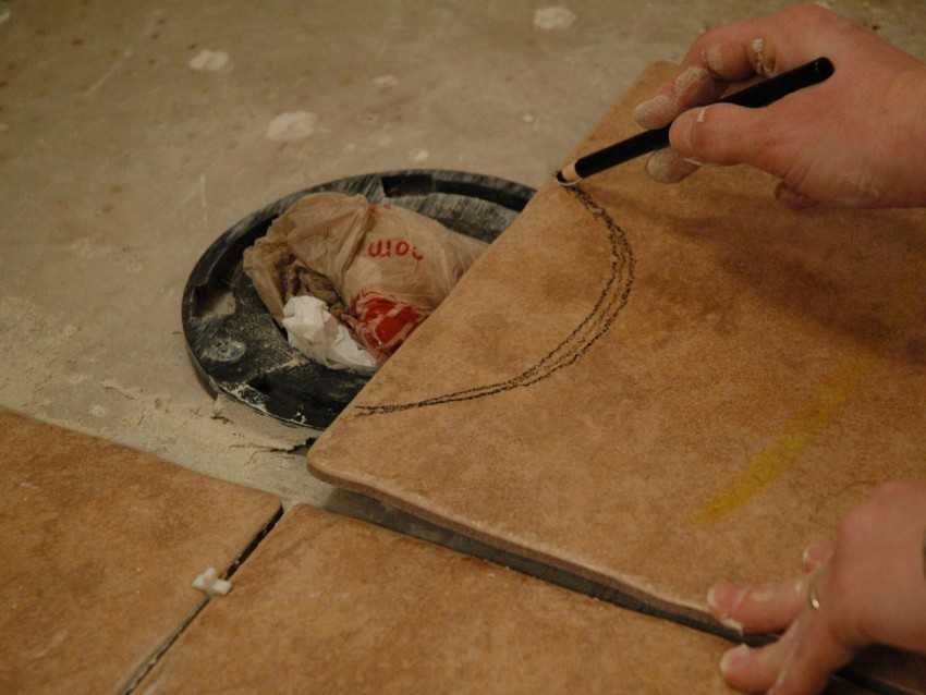 Необходимо определиться, в каком месте будет находиться ванна, кабинка для душа, машина для стирки белья, под ними скроем кафель с подрезанными краями.
