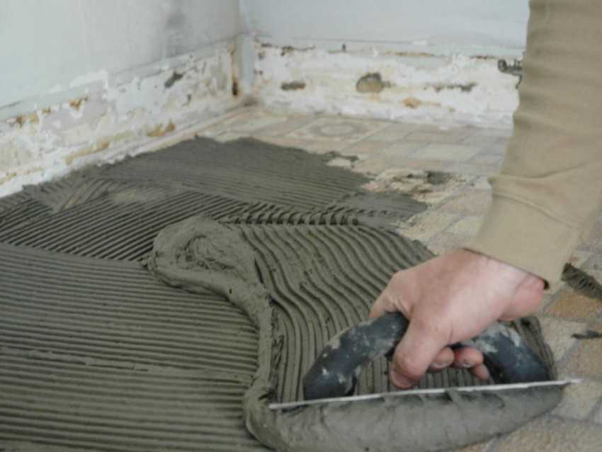 - Зачищаем пол: снимаем с поверхности отслужившей свой срок настил из линолеума, паркета, плитки, в том числе клей или раствор.