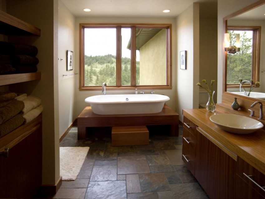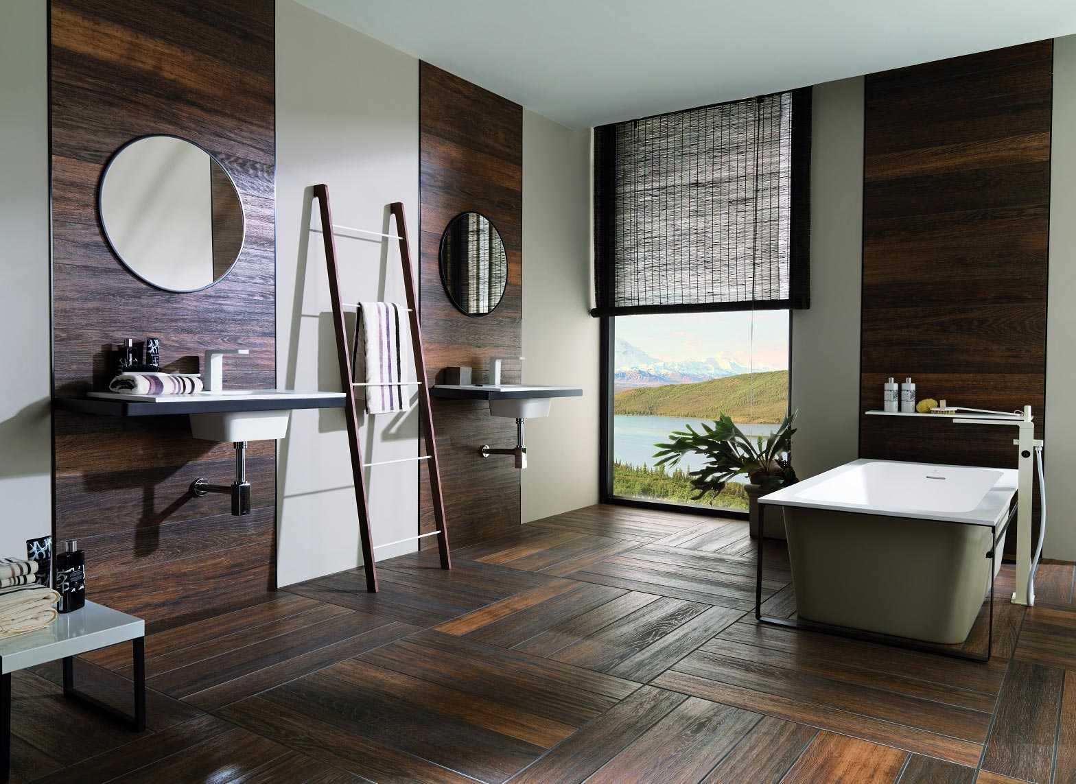 Тенденция натуральности и естественности по-прежнему существует. Например, кафель под старину или дерево будет идеальным вариантом для оформления ванной в современном стиле. Дизайнеры рекомендуют для стен использовать удлиненные модели кафеля. Особый интерес вызывают экземпляры с вырисованными сучьями.