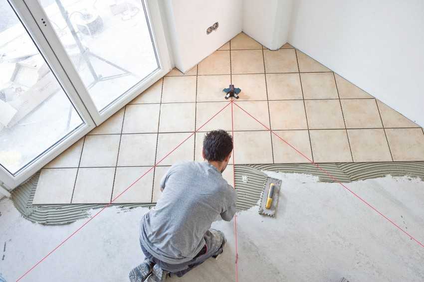 - Укладку плитки следует начать, направляясь от самой удаленной стены к дверному проему.