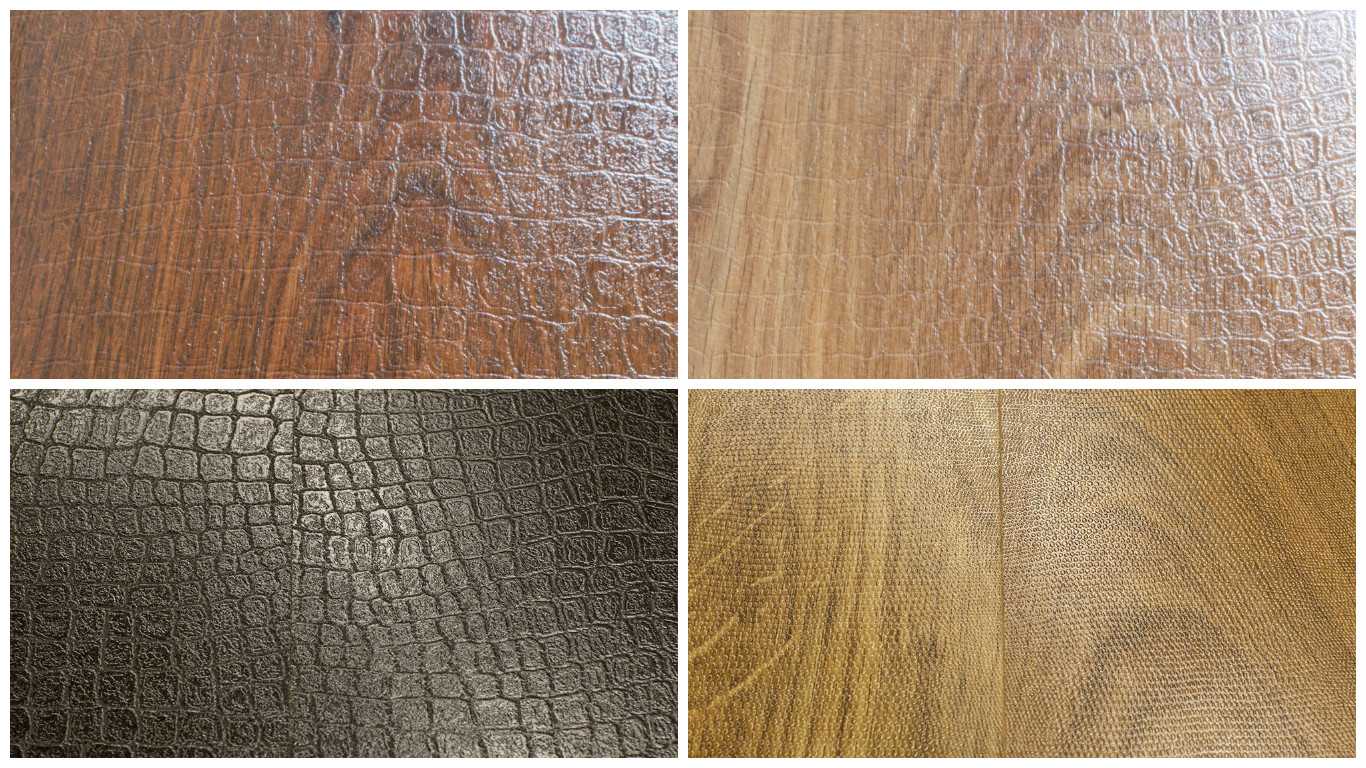 Ламинат выполненный под кожу будет прекрасным вариантом для рабочей комнаты, гостиной. Достаточно красиво, богато смотрится ламинат под крокодиловую кожу. Цвет кожи может быть разный – темный, коричневый, светло-коричневый, белый.