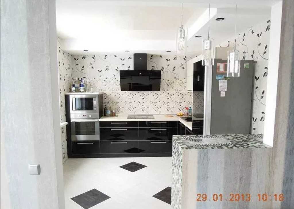 Один из самых сбалансированных вариантов, при котором светлая плитка на кухню на пол сочетается с темной и выкладывается в шахматном порядке. На фото как раз такие варианты.