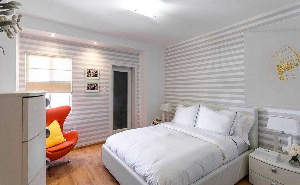 - Вертикальные полосы (фото 4). Вертикальные полосы напротив, вытягивают пространство, делая его выше. Толщина полосок усиливает этот эффект.