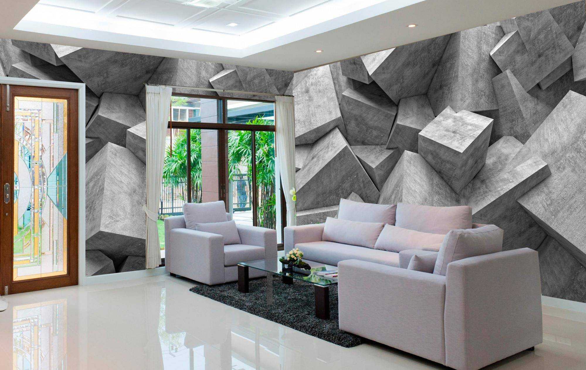 Кубический эффект, который создают 3д обои с геометрическими рисунками, виден только в больших помещениях, на определенном расстоянии. Довольно часто встречаются изображения квадратов, прямоугольников, объемных кубов, парящих в воздухе шаров и многие другие.