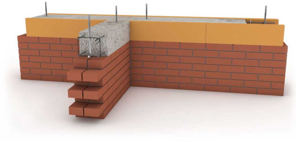 в 1,5 кирпича, с облицовкой керамическим кирпичом, можно использовать самый простой способ сооружения армированного пояса.