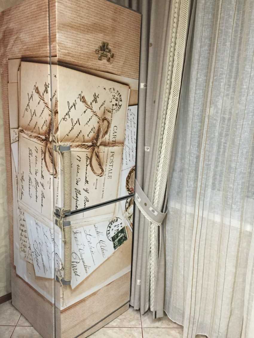 Дизайн комнаты своими руками из подручных материалов может быть выполнен в технике декупаж. Предлагаем вам украсить небольшое зеркало в деревянной раме: