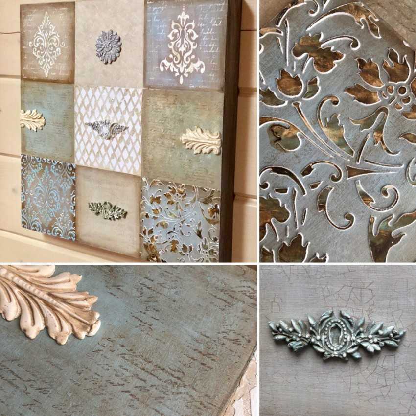 Панно из кусков обоев, вставленных в рамки из старых деревянных реечек