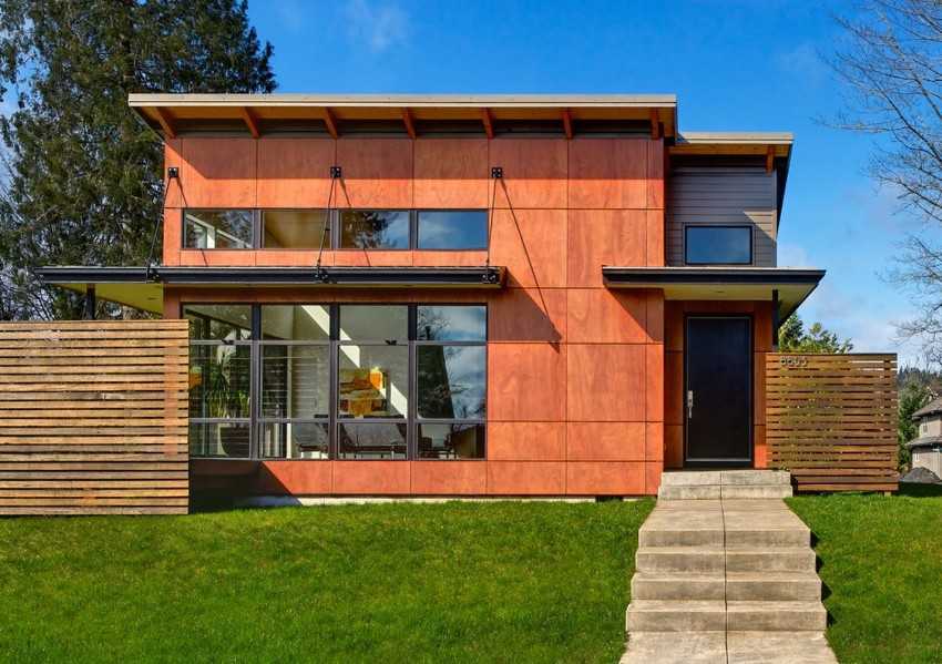 Материал, с помощью которого выполняется дизайн фасада дома, не должен демонстрировать склонность к выветриванию или вымыванию