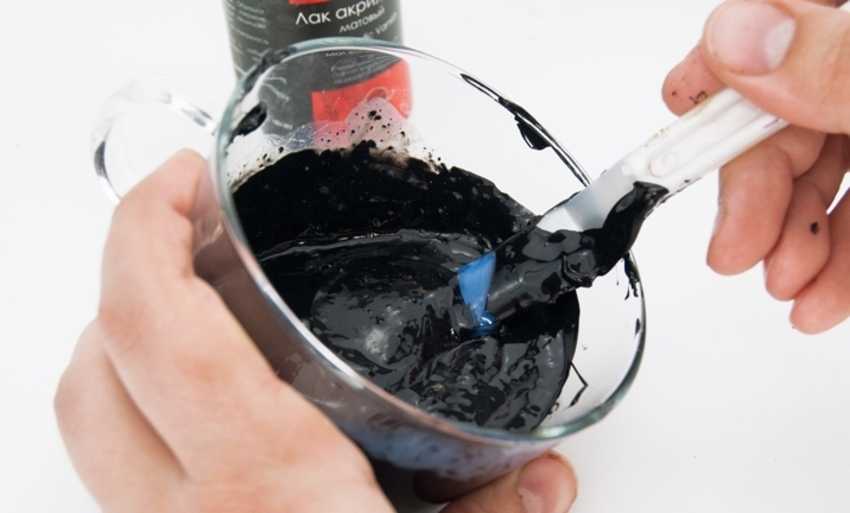 Сначала в посуду засыпают цементный порошок, далее постепенно доливают краску и лак. Все тщательно перемешивают и в конце разбавляют водой. Средство готово к нанесению на любую поверхность.