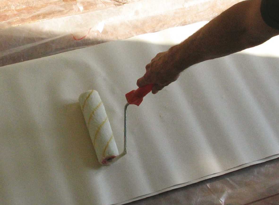 - Тяжелым виниловым полотнам наоборот, лучше дать время на пропитку и только после этого приступать к оклеиванию.