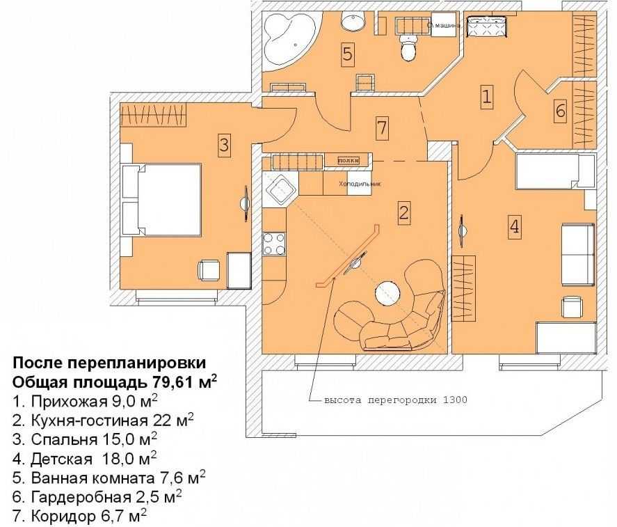 - увеличивать площадь кухни, используя для этого квадратные метры туалетной или жилой комнаты (как и увеличивать площадь санузла за счет жилой комнаты или кухни). Также перепланировка квартиры полностью запрещена, если речь идет о переносе кухни в жилую комнату;