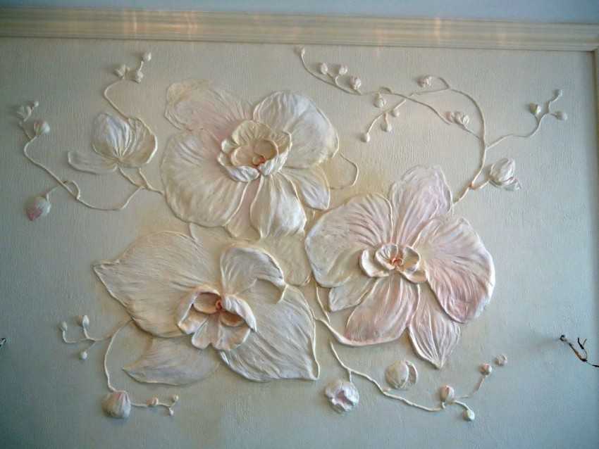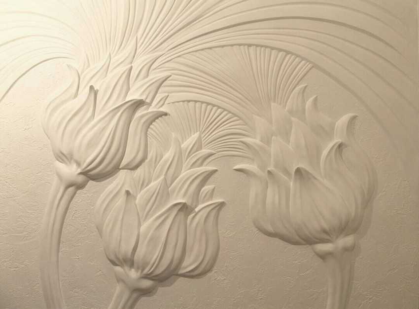 Дизайн декоративного панно из гипса подбирается в соответствии с интерьерным стилем. Рельефное панно может быть изготовлено в виде картины с цветами и растительными элементами, маскарона, барельефа или абстрактной композиции. Оно может занимать небольшой участок поверхности или полностью всю стену.