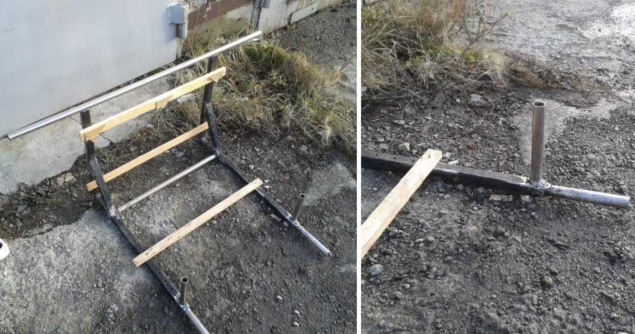 Несмотря на недостатки, вышеприведенная конструкция много раз повторена. Она проста, надежна, занимает немного места, поэтому популярна. Размеры немного корректируют, оставляя диаметры труб и толщину уголков без изменений или увеличивая толщину стенок. Пример — на фото ниже.
