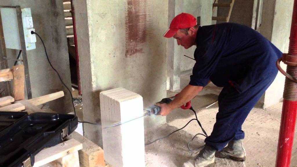- защитные очки, перчатки и респиратор (при нарезке пенобетон пылит);
