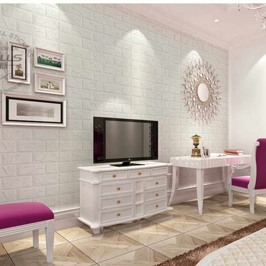 Белая кирпичная стена в спальне