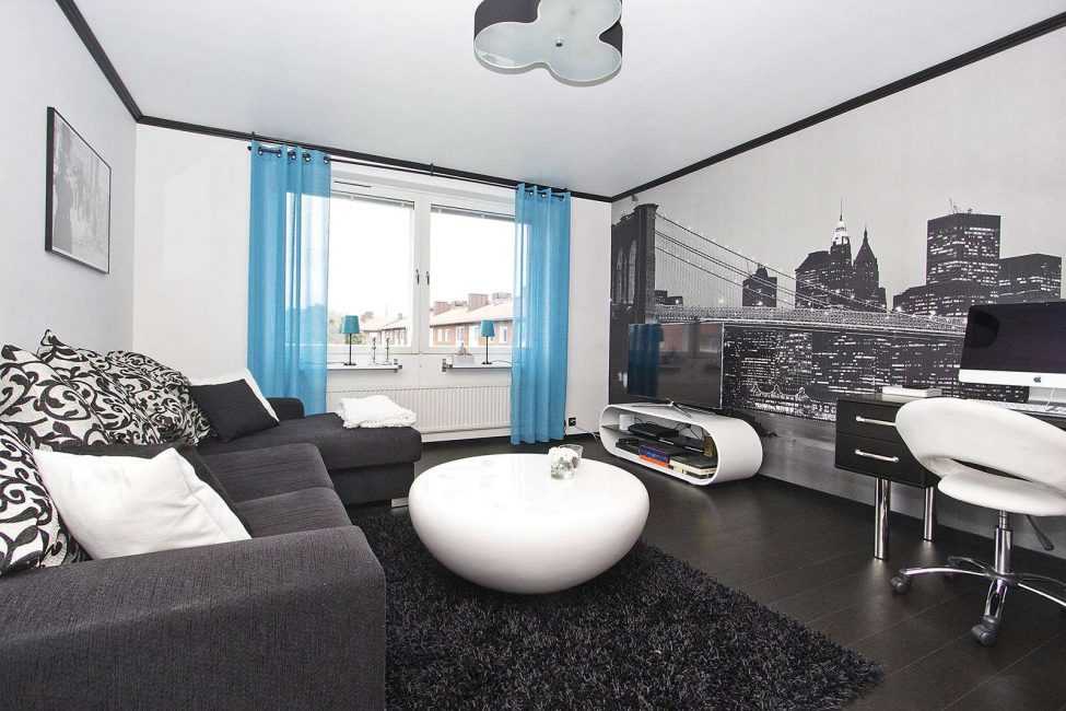 Если комната слишком светлая, или интерьер получился чересчур монотонным, не обязательно использовать темные обои на всех стенах. Можно стену напротив окна оклеить темным, остальные пусть будут светлыми. В результате помещение не будет очень уж светлым, а вы избавитесь от давящей атмосферы, которую создают темные стены.