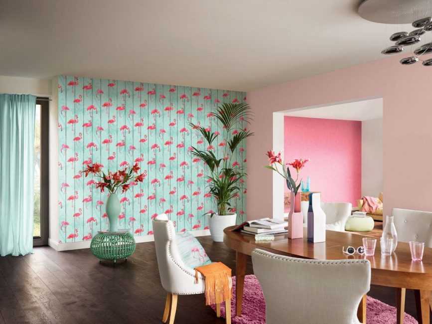 Если необходимо расширить квадратную комнату, нужно на одной стене наклеить обои с ярким насыщенным орнаментом