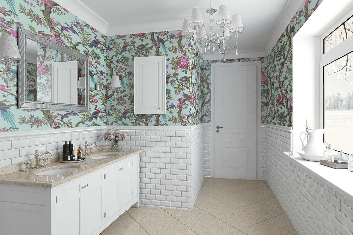 Важно не перегрузить интерьер, выбирая что-то одно: либо обои с выразительными принтами, либо акцентная плитка