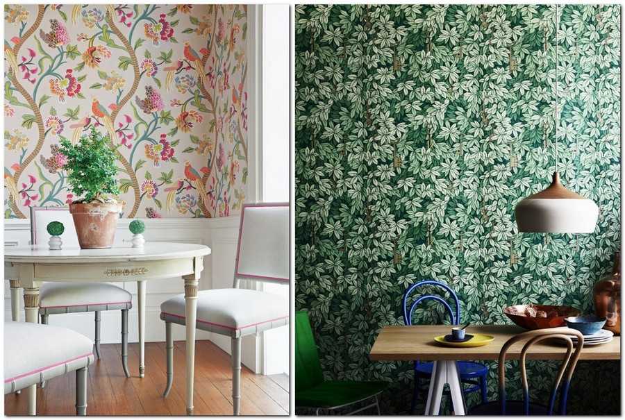Даже два или три вида обоев в интерьере можно сочетать с разными поверхностями. Интересно смотрятся следующие варианты: