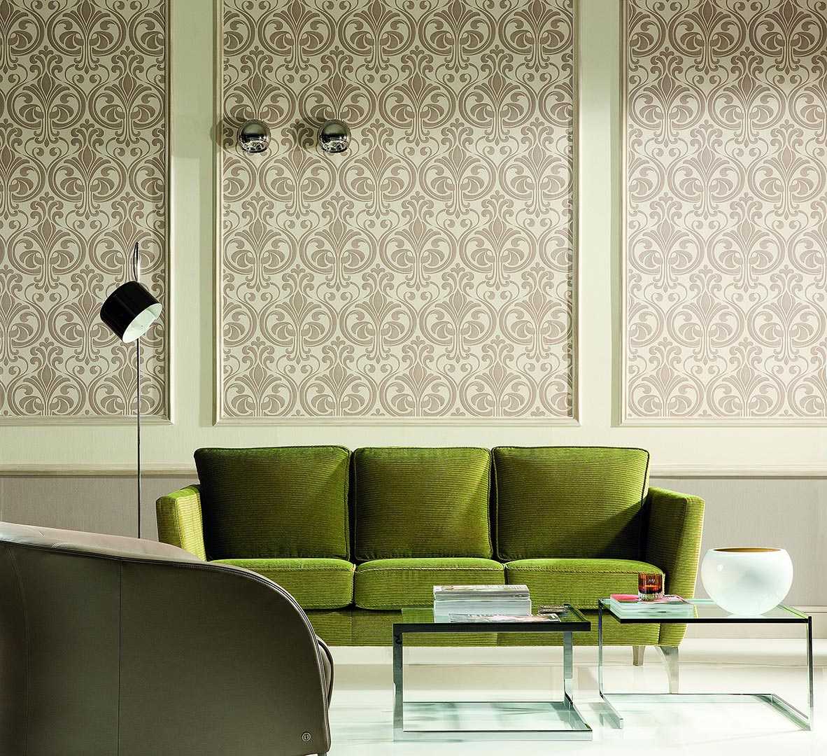 С красочными и узорчатыми обоями с цветочным рисунком подойдет приглушенная мебель, например белая, которая незаметно затеняет тень. Благодаря такому расположению гостиной вы можете смело использовать различные элементы декора, помня соответствующие цвета и акценты.