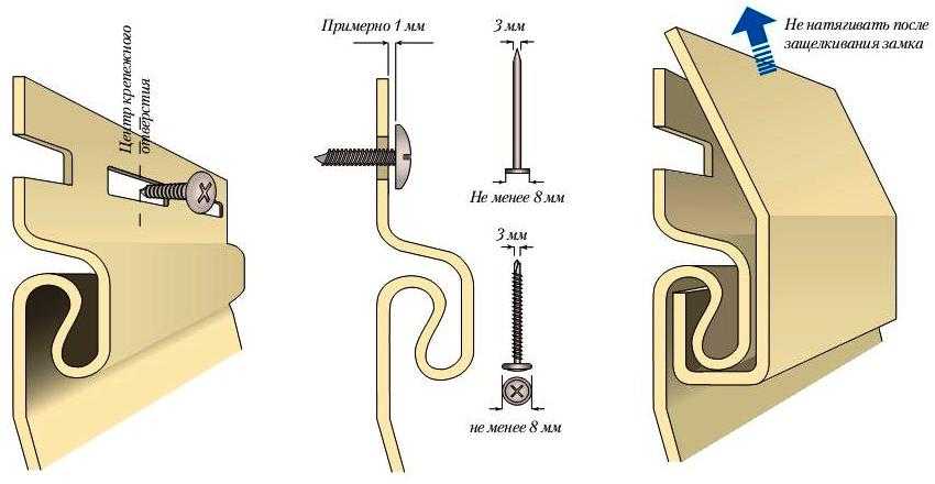 - также необходимо соблюдать зазор около 1 мм, если осуществлять при помощи скоб монтаж винилового сайдинга. Инструкция обычно указывает на такие важные моменты.