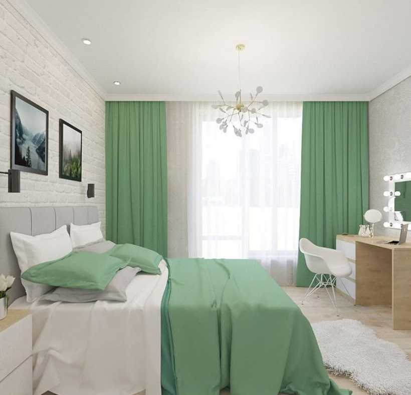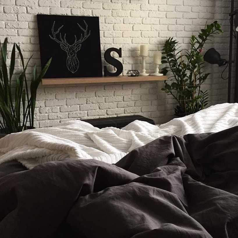 Белая кирпичная стена в спальне