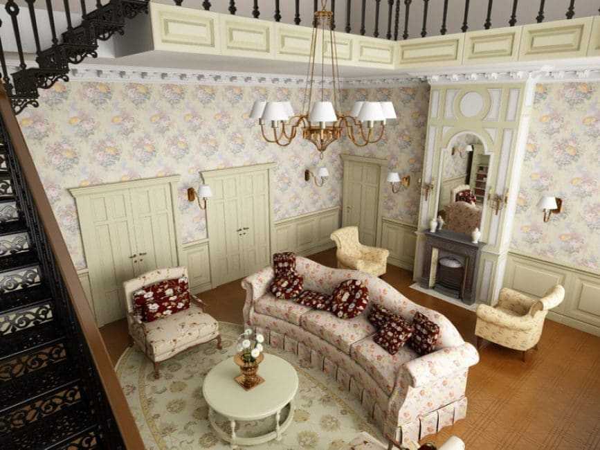 Часть старой мебели, доставшейся в наследство, легко реставрировать и пристроить в интерьере. Придется подыскать деревянные стулья и столы с точеными ножками, а также светильники и мебель с ажурной ковкой, которая создает иллюзию невесомости.