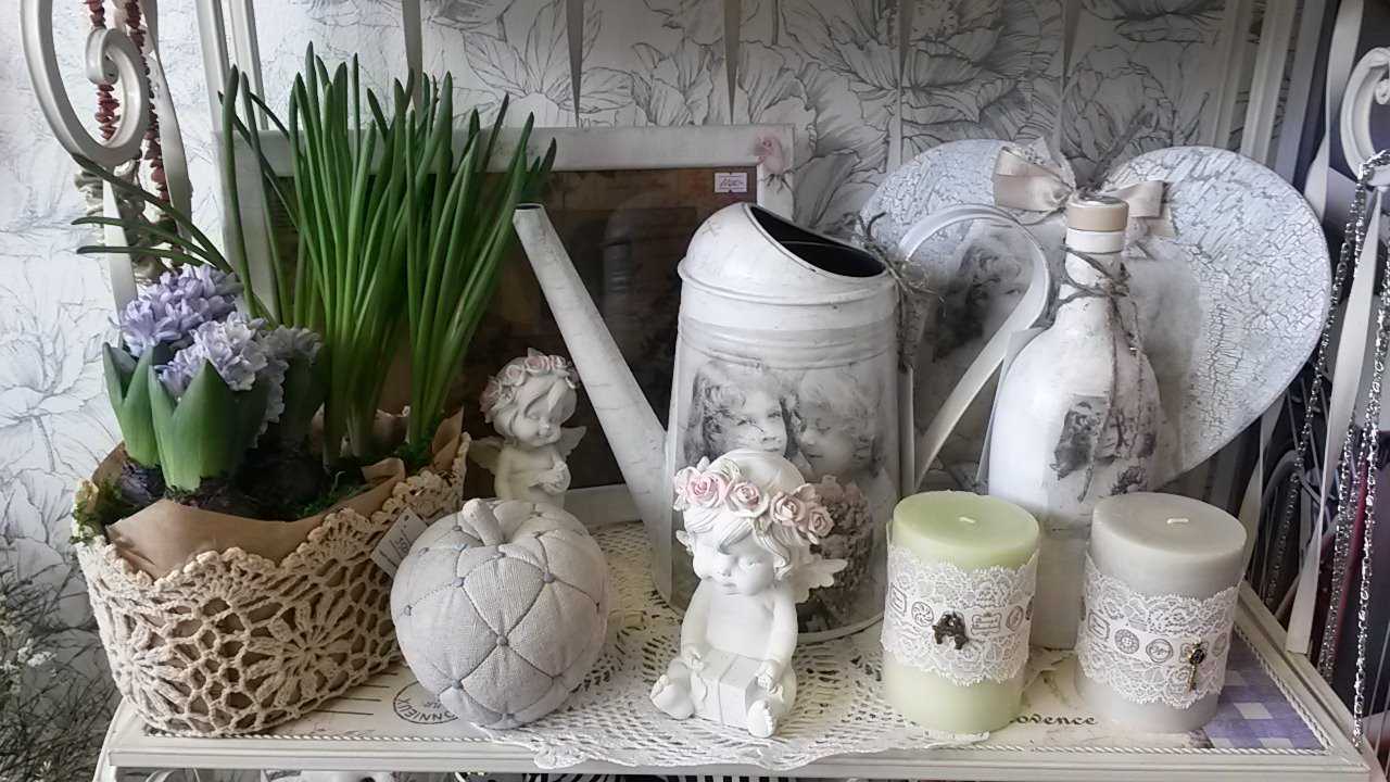 Дополнят композицию старые фото, керамика, фарфор, вышивки в рамках.