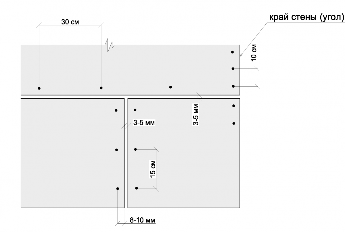 - кроме того, между самим листами нужно оставить 2 мм, потом закрыв их шпатлевкой;