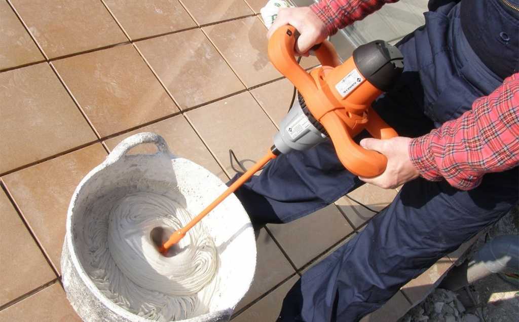 Для получения однородного раствора без комков используется строительный миксер для смешивания материалов.