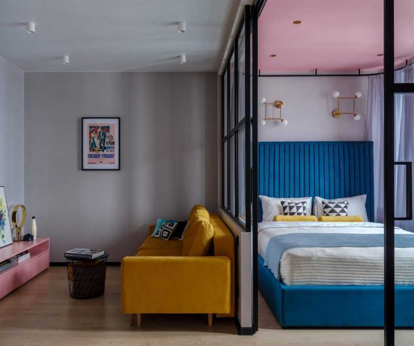Комнату-студию можно зонировать на спальню и гостиную двумя способами: