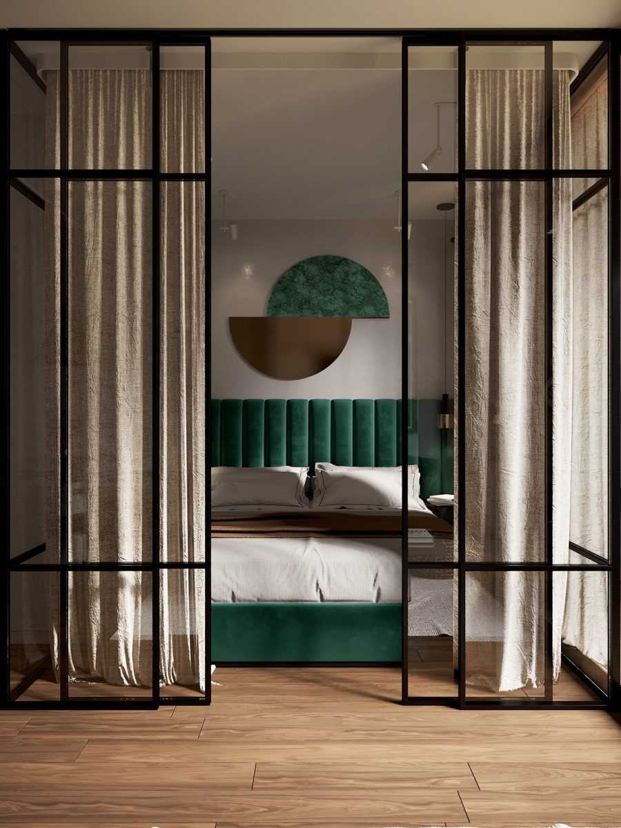 Перегородка из стекла в спальнеИсточник remontbp.com