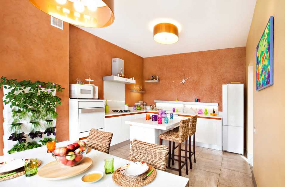 При подборке компонентов надо ориентироваться на функциональное предназначение помещения. В детской отлично приживется тренд сезона «3 краски», вот только нужно откорректировать состав палитры под возраст юного хозяина. Комбинируя яркие тона, не забывайте, что контрастность сочетания повлияет на визуальное восприятие пространства. Чем резче она будет проявляться, тем меньше будет казаться помещение. Осторожными нужно быть и в покраске стен в гостиной супермодным терракотовым, фиолетовым, виным или сливовым оттенком. Нужно помнить, что кричащим краскам не будет места в спальне. Там царство спокойных спектров, способных расположить к релаксу. А вот фон кухни и столовой можно сделать повеселее