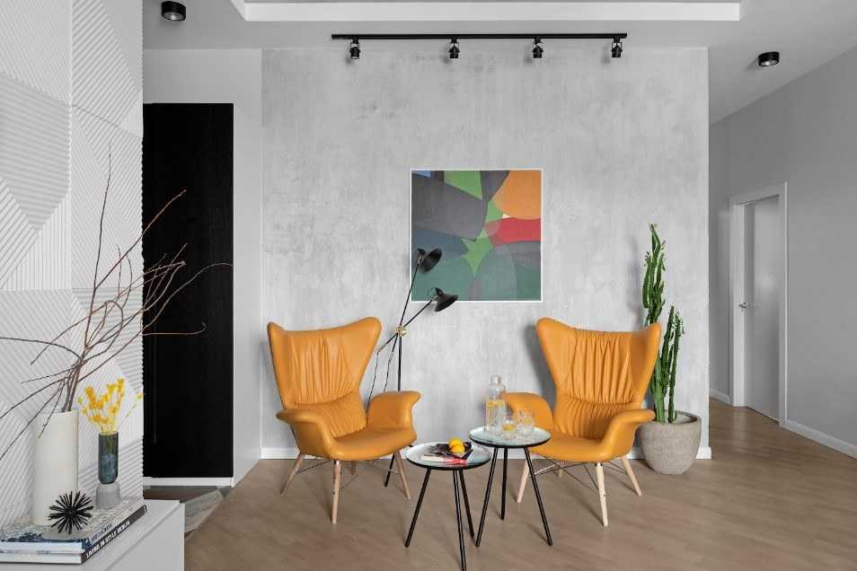 Обязательные детали – бархатная обивка и мебель с отголосками из далёких 70-х. Бархат обладает очень приятной текстильной фактурой и идеально дополняет как современные, так и классические стили оформления. Такие оттенки как изумруд, розовый гранат или сапфир не оставят вас равнодушными. Для стен в такой гостиной следует выбрать однотонный вариант отделки. Что касаемо мебели, то речь не идёт о полном копировании моделей из прошлого. Плавные линии и округлые силуэты дивана, кресел или симпатичного пуфика прекрасно адаптируются к скандинавскому, минималистичному и многим другим стилевым решениям.