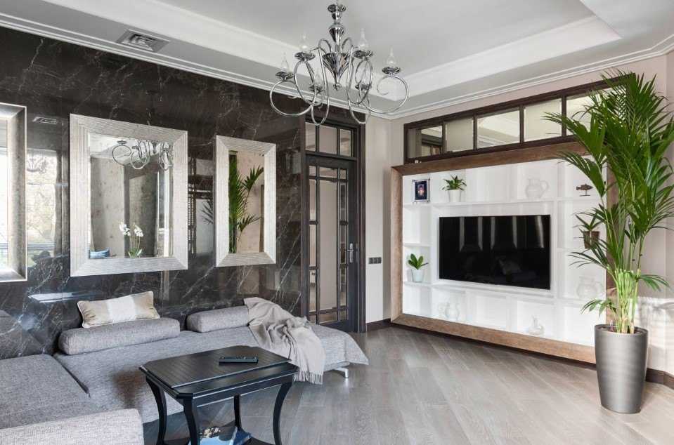 Какая отделка стен будет в вашем доме, напрямую зависит от стилевого направления выбранного интерьера. Современные обои могут изготавливаться на основе дерева или пластика, что в дальнейшем даже позволяет подвергать их влажной обработке. Можно подобрать вариант с рисунком, который освежит стены или под покраску. Кстати в этом сезоне очень красиво смотрится сочетание нескольких видов такого материала одновременно. Например, одна стена оклеена обоями с рисунком, а на другой интерьер дополняют однотонные обои. В продаже также имеется большой выбор 3D-панелей, которые смотрятся не менее привлекательно. Оригинальным решением для оформления стен станут фрески с золотистыми деталями, лепнина и разнообразные вариации зеркал. При оформлении интерьера в стилистике лофт, при помощи специальной доски на стенах создают эффект кирпичной кладки или небрежной штукатурки, что и является главной особенностью этого стиля.