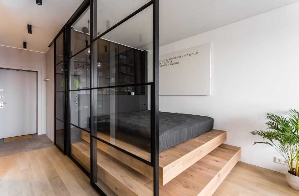 Благодаря своим «отражающим» качествам, такой материал становится всё более популярным в декорировании помещений. Стекло наполняет любое помещение светом и расширяет пространство, что абсолютно не уменьшает общую функциональность. Для комнат небольшого размера можно дополнительно использовать зеркала, которые визуально увеличивают площадь.