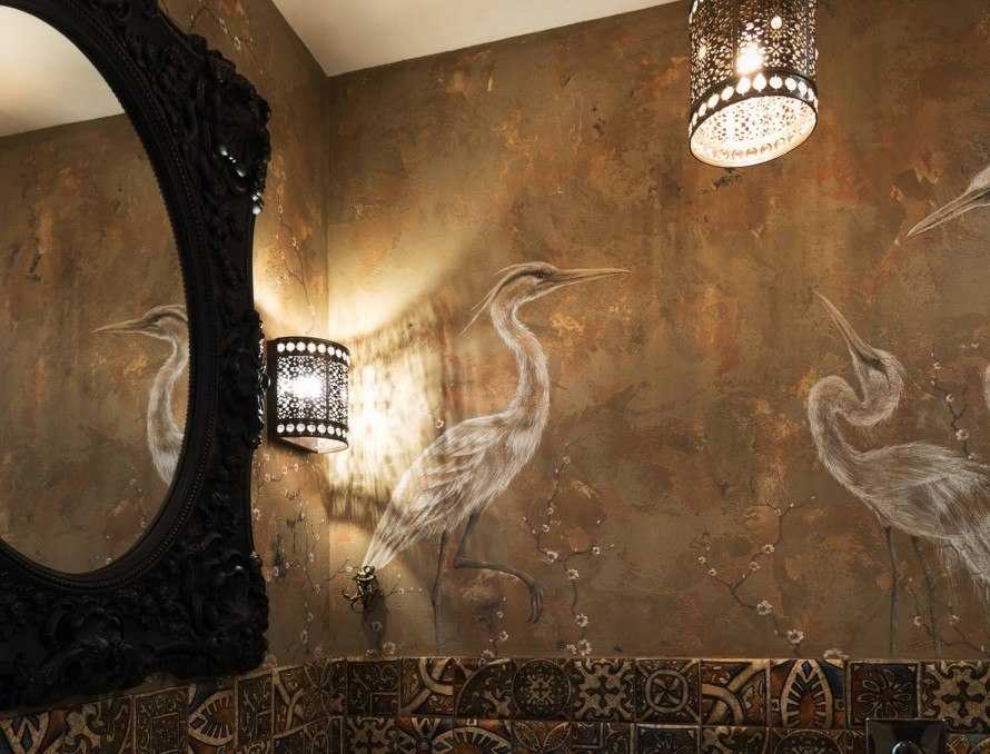 - Рельефный декор. Изображение наносится в несколько слоев и будто выходит из стены, это добавляет объема всей комнате. Пейзажи и животные в этой технике кажутся абсолютно реалистичными.