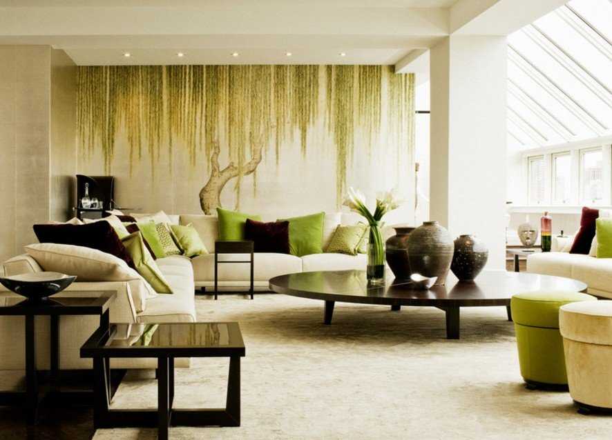 Эффективно расширяют пространство горы, море и лес. Как видно на фото, растительность, даже на картинах, помогает успокаиваться. Светлые оттенки придадут атмосфере воздушность и легкость.