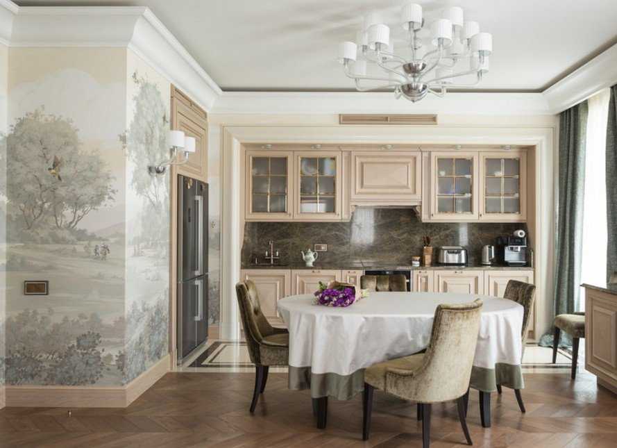 - классический. Данный стиль всегда остается модным и востребованным. Среди его основных характеристик можно выделить сдержанность, гармоничность, простоту линий и симметрию. Рисунок, выполненный в таком стиле, придаст интерьеру благородность и стиль. Он станет отличным украшением гостиной, спальни и коридора. При этом классический стиль отлично сочетается с современными или нестандартными элементами, позволяя сохранить общий стиль интерьера;