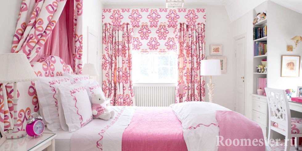 При оформлении интерьера помещения многие задумываются над вопросом о том, какие шторы подойдут к розовым обоям. Такая отделка стен лучшим образом сочетается с белоснежными занавесками, что подходит для небольших помещений. Оригинально выглядят бело-розовые изделия с цветочным орнаментом или в полоску.