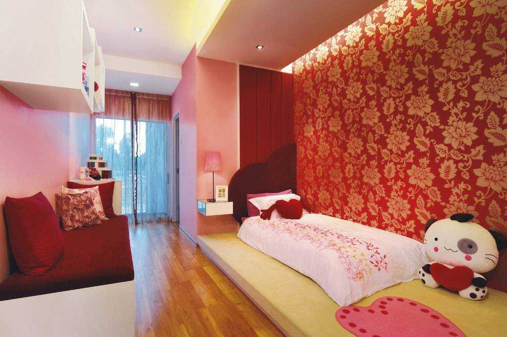 На фото детская комната для девочки с бордово-золотистыми стенами.