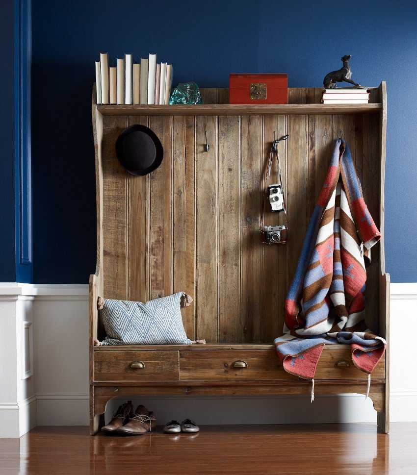 В компактной прихожей бордовые обои можно совместить со светлыми деталями, например деревянные панели молочного цвета, светлая мебель, яркое освещение, зеркала. Все эти детали будут «расширять» пространство коридора.