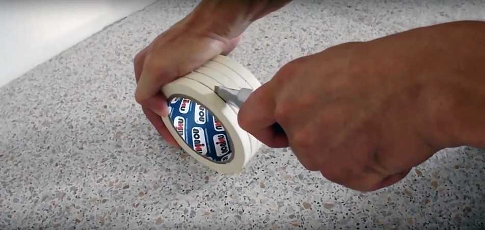 На фото малярный скотч с шириной 50 мм, его тоже можно использовать, но удобнее всего брать армированный.