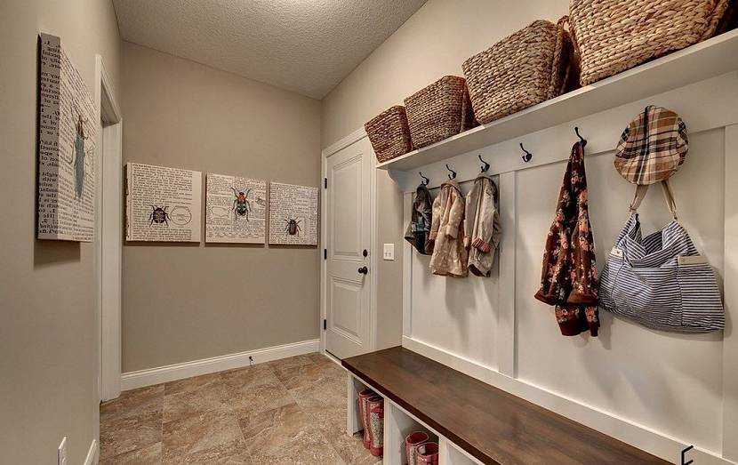 В прихожей углубление чаще всего используют для практических целей. Простая перекладина или шкаф для одежды, полки для вещей и минимум декора. Это поможет избежать перегруженности и беспорядка в комнате.