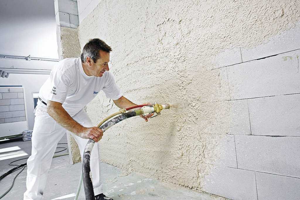 Механизация штукатурного процесса позволяет автоматизировать все этапы – от разведения смеси до покрывания стены раствором.