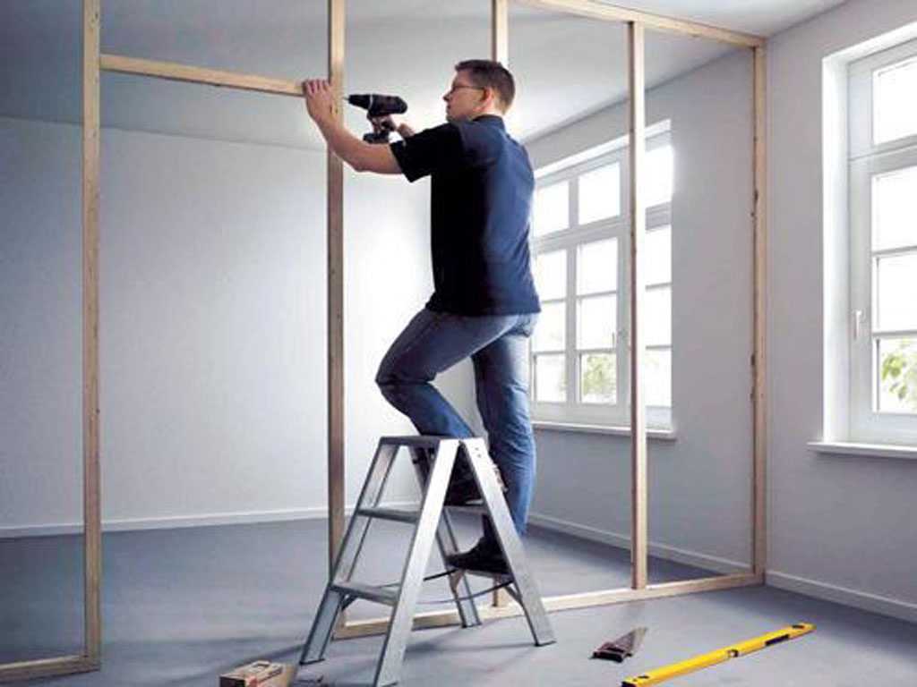 - Устройство деревянного каркаса для перегородки из гипсокартона